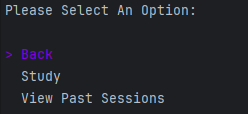 - The application features a study session for studying a chosen stack, as well as viewing past study sessions.