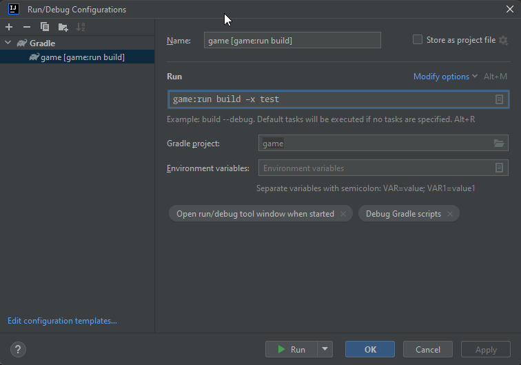 You should now have all the required files in place, which means next up is adding a Gradle run configuration. Follow the next 3 pictures and make sure your Run task is exactly how I wrote it. This is important to ensure that plugins are properly being built when running the server.