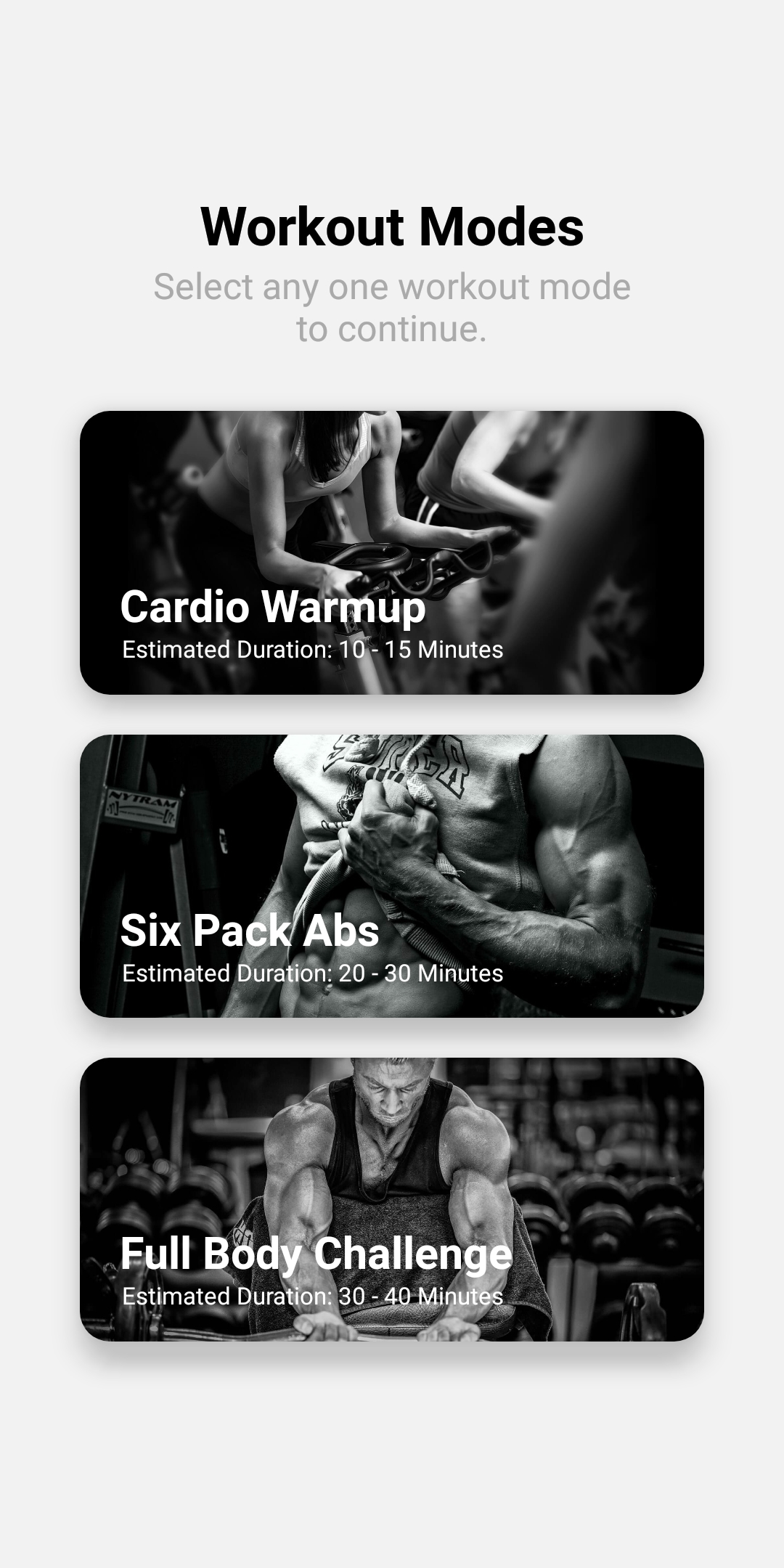 Personal fitness guide, offering 3 distinct workout modes, enabling users to choose & seamlessly follow their preferred routines for effective home workouts