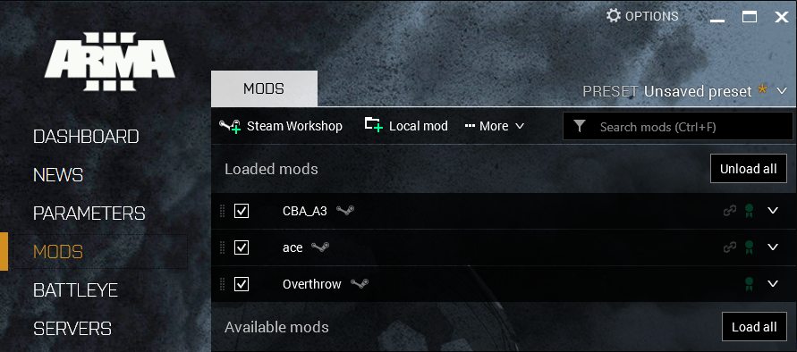 - Open your Arma 3 Launcher, click on "Mods" > "Local Mod"