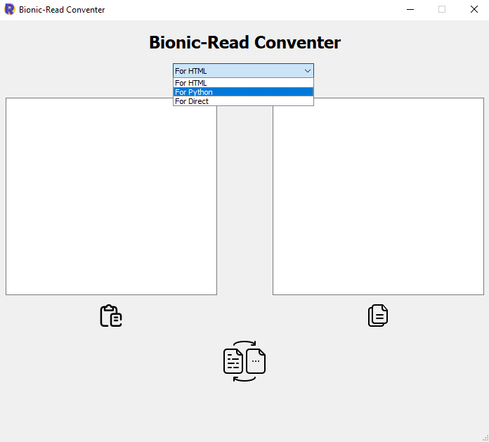 Bionic-Read-Conventer This program converts texts from normal to Bionic-Read format. -> This program uses the PyQt5 library in Python. (If you have installed PyQt5 library you can start BRConverter.py and experience it)
