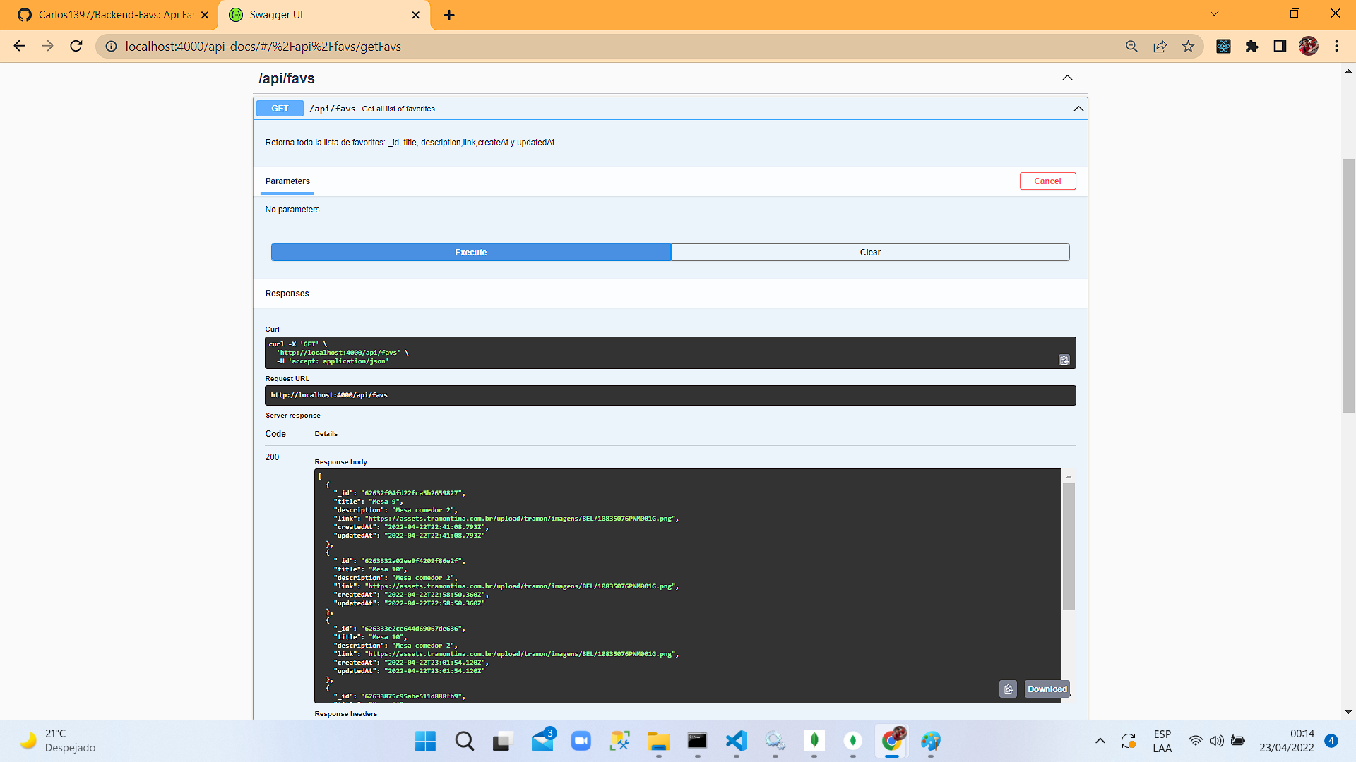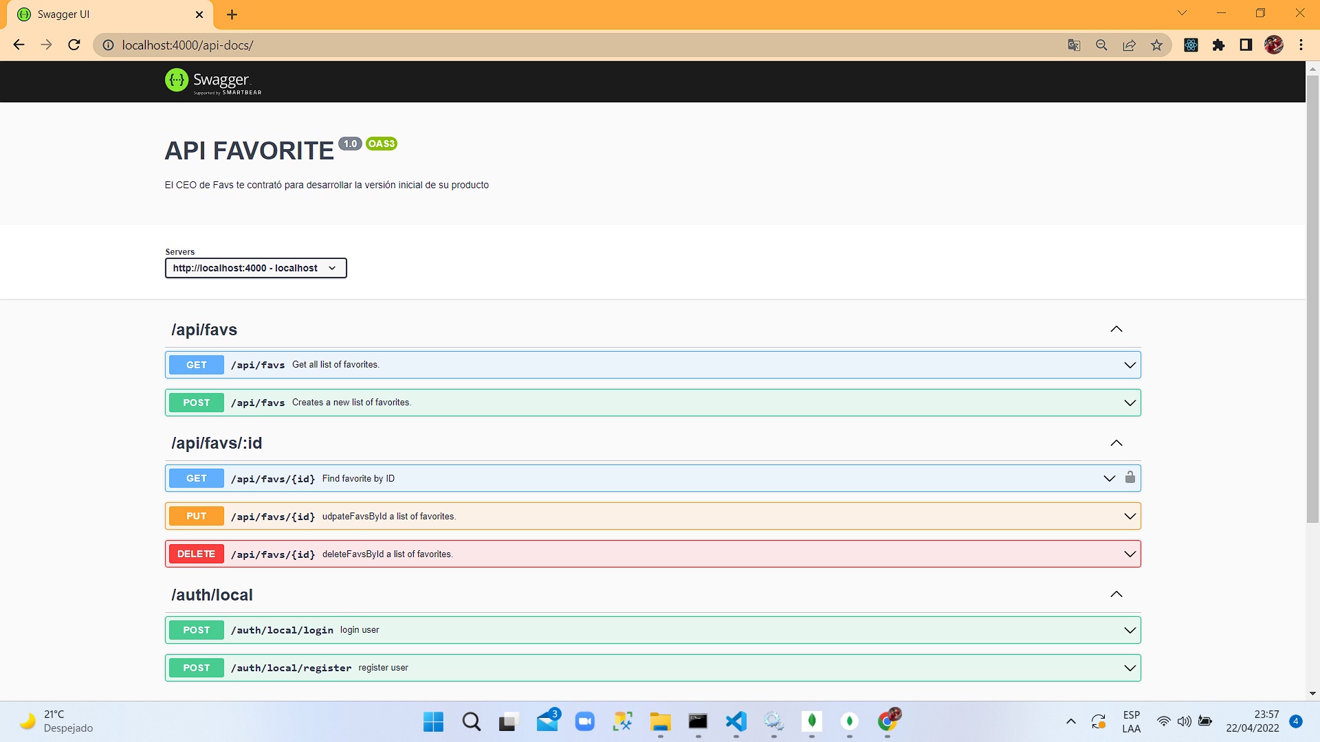 | /api/favs | GET | Get all list of favorites |