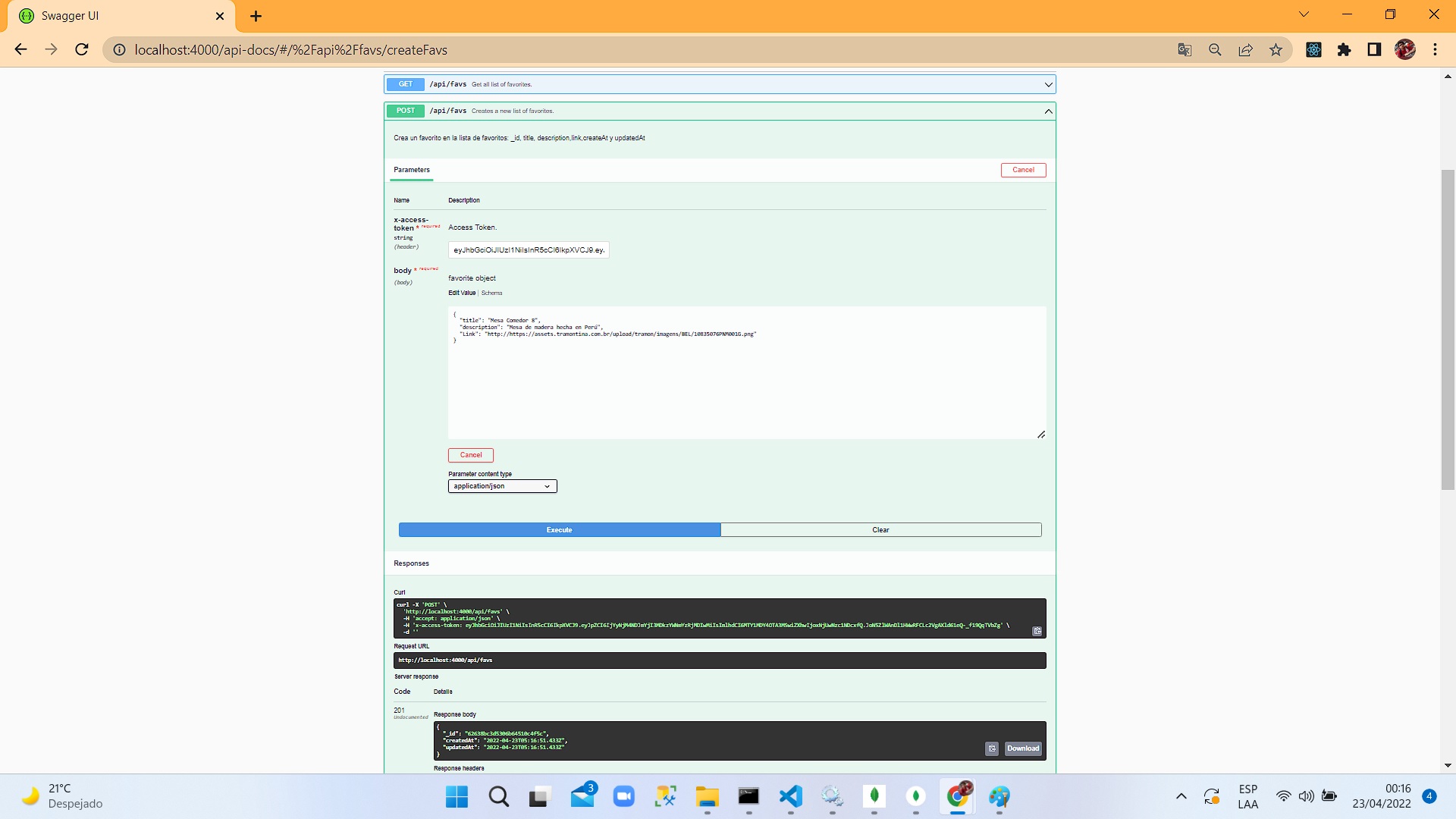 | /api/favs | POST | Creates a new list of favorites |