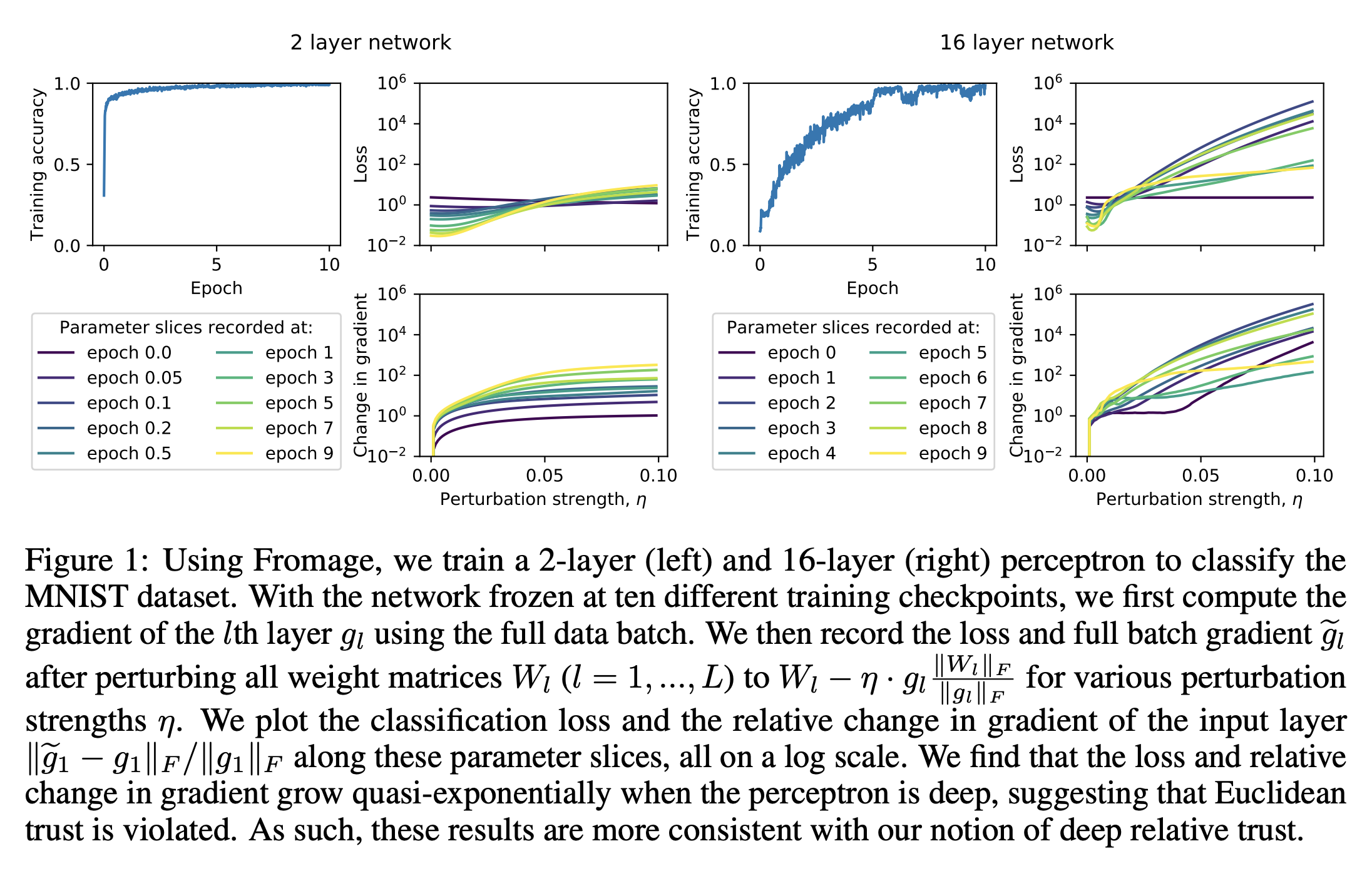 - ニューラルネットワークとヤコビアンの摂動解析から,新しい距離関数であるdeep relative trustを導出.
