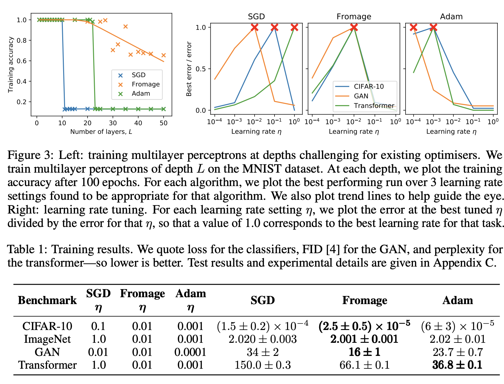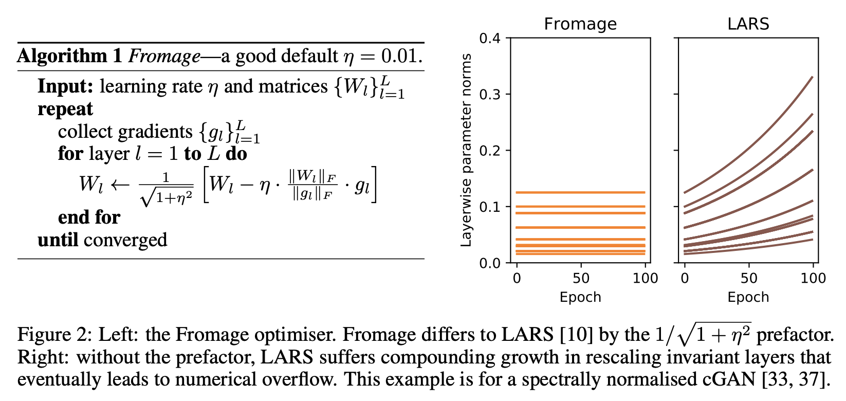 - この距離関数から導出される補題から,新しい学習アルゴリズムであるFrobenius matched gradient descent (Fromage)を導出.