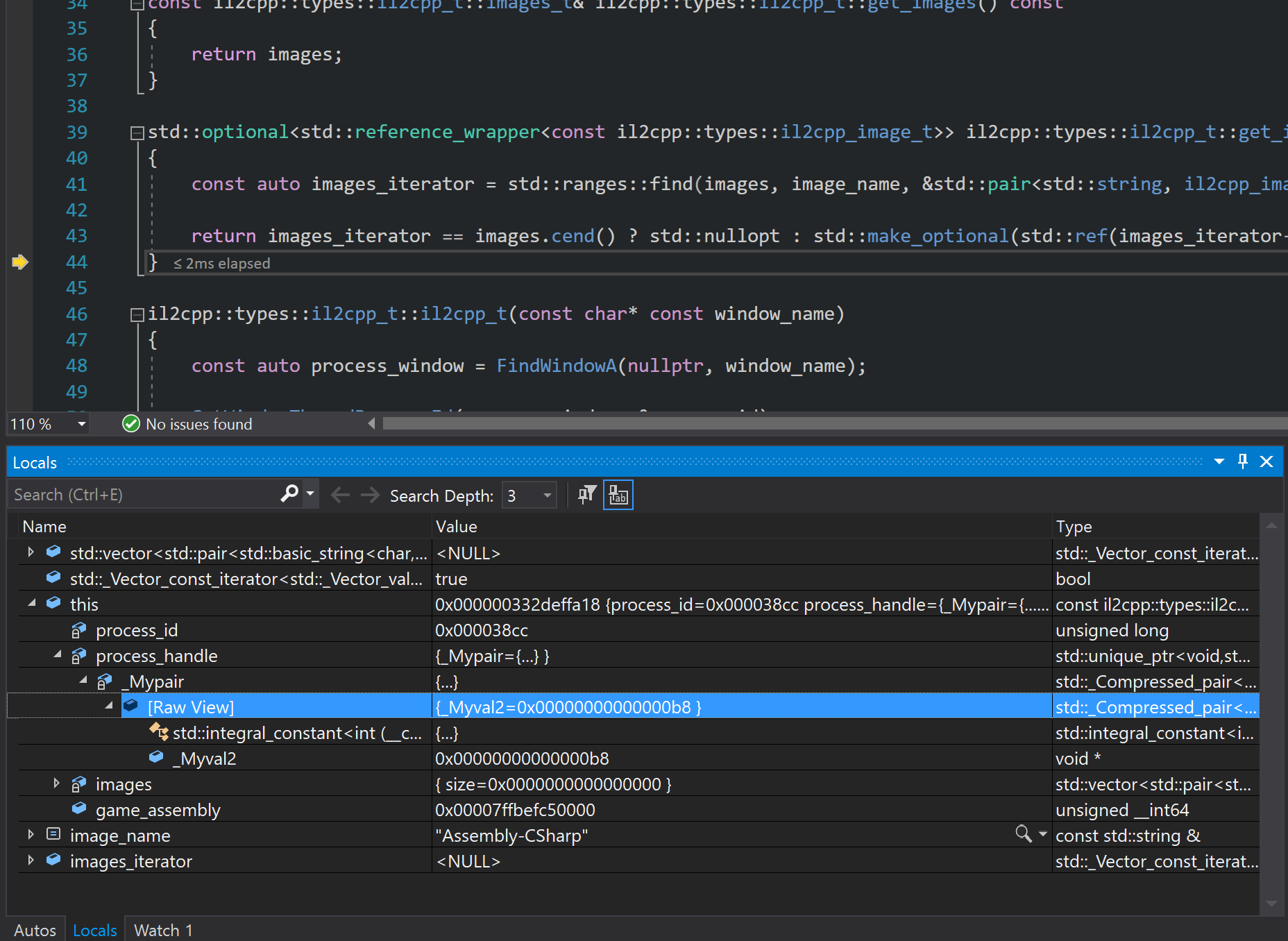 Ottengo il modulo di base per GameAssembly.dll ma non ottengo alcun risultato da "if (const auto assembly_csharp = il2cpp.get_image ("Assembly-CSharp"))".