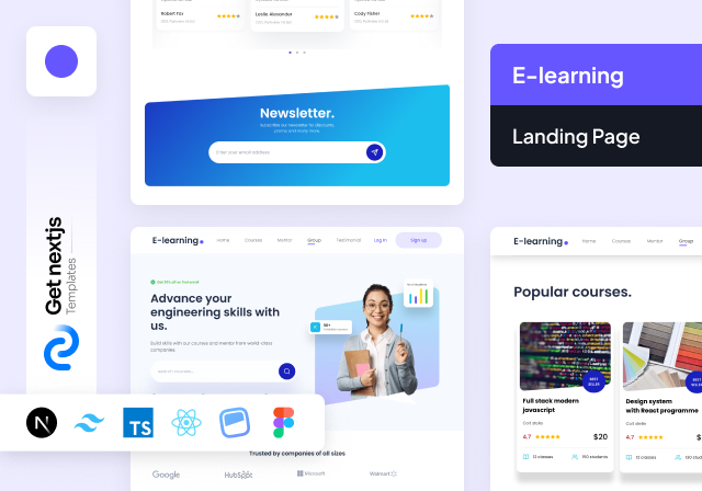 This free landing page template helps you build e-learning websites fast. It’s made with modern tools like React , Next.js, and Tailwind, so it’s fast and works well. You don’t have to start from scratch just use the ready layouts and change them to fit your needs.