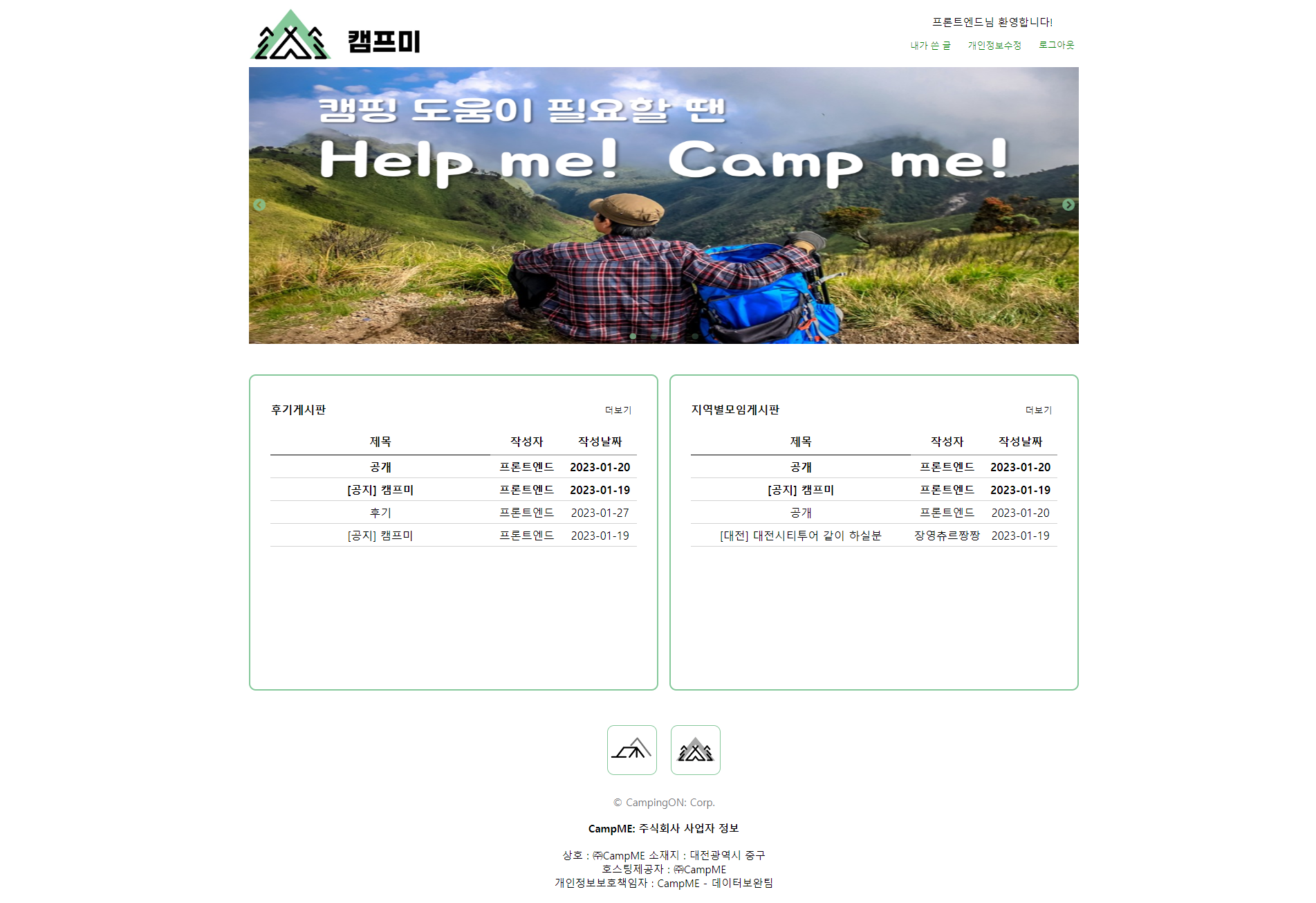 세부 업무 : CampME 게시판 글등록,CampingON 예약기능,다녀온 캠핑기록