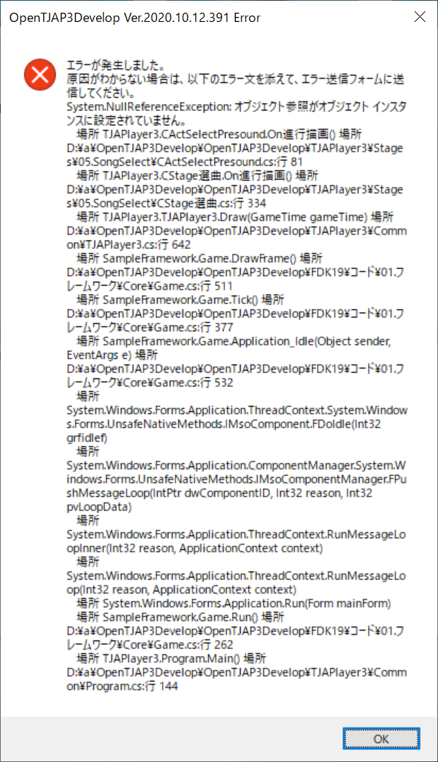 注意: お使いのTJAPlayer3-Developが最新のバージョンであること確認してください!
