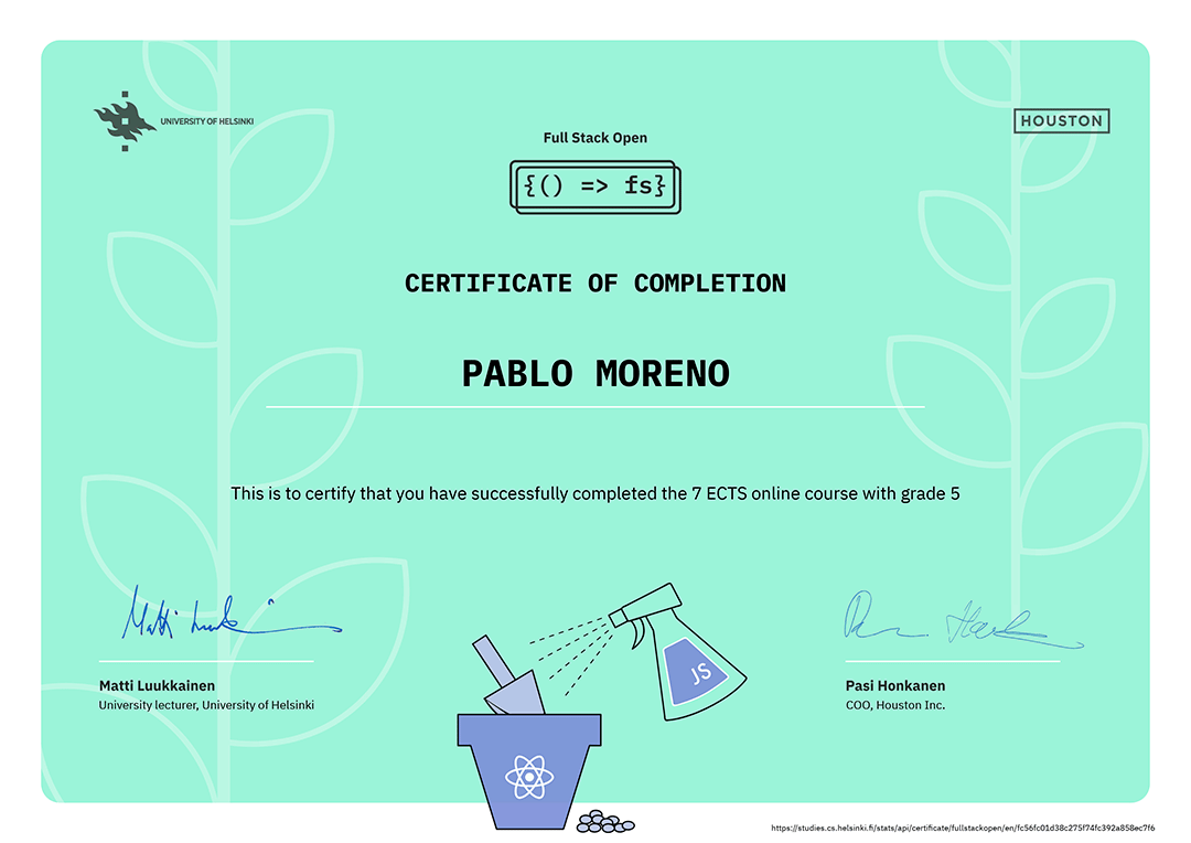También incluye una sección sobre GraphQL, una alternativa moderna a las API REST, una sobre TypeScript, una sobre React Native y uso en aplicaciones móviles nativas, una sobre sistemas de Integración Continua / Entrega Continua (CI/CD) y sus buenas prácticas para desplegar aplicaciones, una sobre Contenedores y sus utilidades, y una sobre PostgreSQL como base de datos relacional.