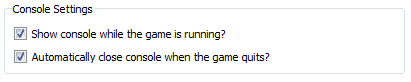 Here you can set the set when the Minecraft console is showing & whether to automatically close the console when the game closes/crashes.