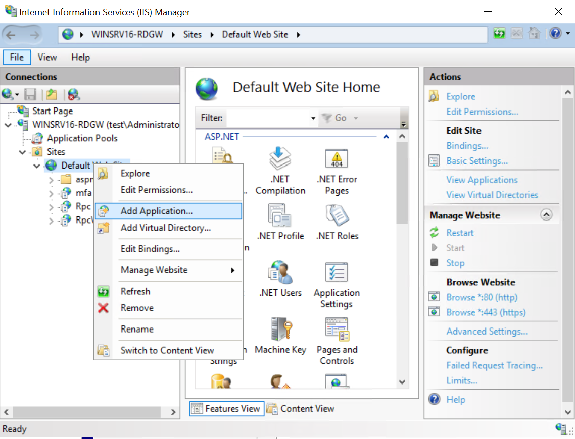 api.multifactor.ruhost via TCP port 443 (TLS); - You need to have a Web Server (IIS) role with Application Development -> ASP.NET 4.6 component installed on the server;