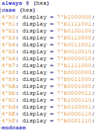 Для отображения шестнадцатеричных значений на семисегментом индикаторе использовался модуль "hex7seg":