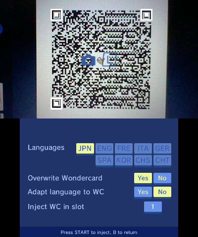 • Capable of scanning QR codes to inject both .pkx files or event wondercards