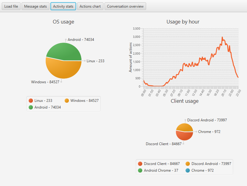 Discord Package Analyser Analyse your discord data package for some neat stats. Screenshot of current version: More charts coming soon.