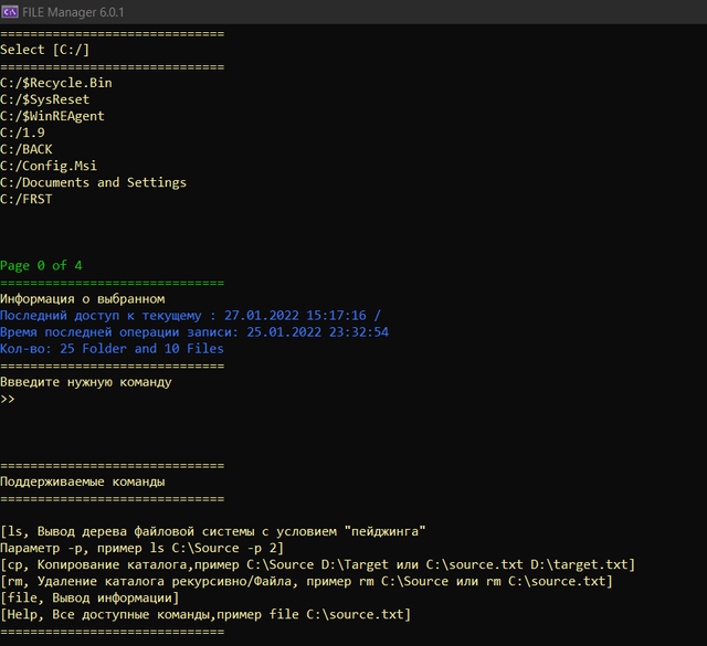 "rm", "Удаление каталога рекурсивно/Файла, пример rm C:\\Source или rm C:\\source.txt");