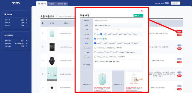 - 강현주 : <관리자 페이지> 상품 추가 삭제 수정 | <사용자 페이지> 카테고리 기능