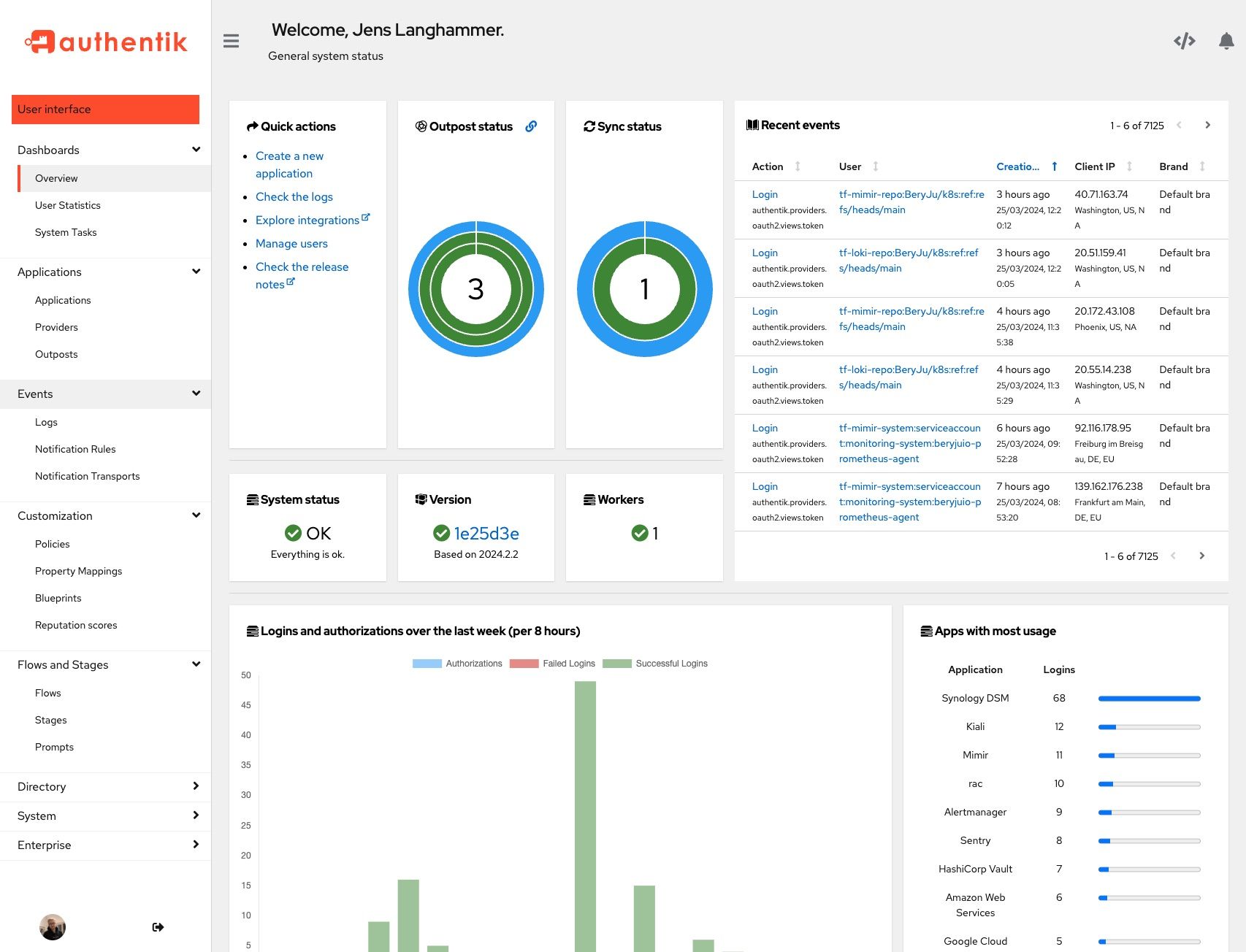 authentik is an open-source Identity Provider that emphasizes flexibility and versatility. It can be seamlessly integrated into existing environments to support new protocols. authentik is also a great solution for implementing sign-up, recovery, and other similar features in your application, saving you the hassle of dealing with them.