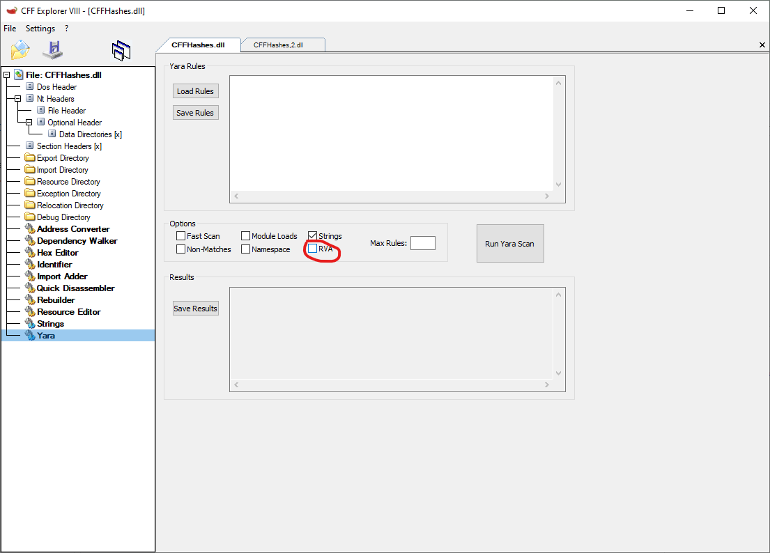 I added an option to display String / YARA signature RVA in addition to the file offset