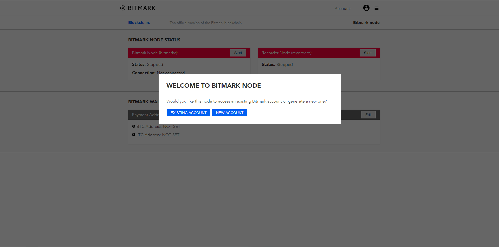 Khi phần mềm Bitmark node được sử dụng lần đầu tiên, nó sẽ tạo cho bạn một tài khoản Bitmark, bao gồm bộ khóa công khai và khóa riêng tư.