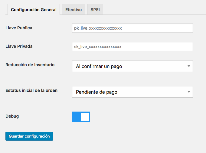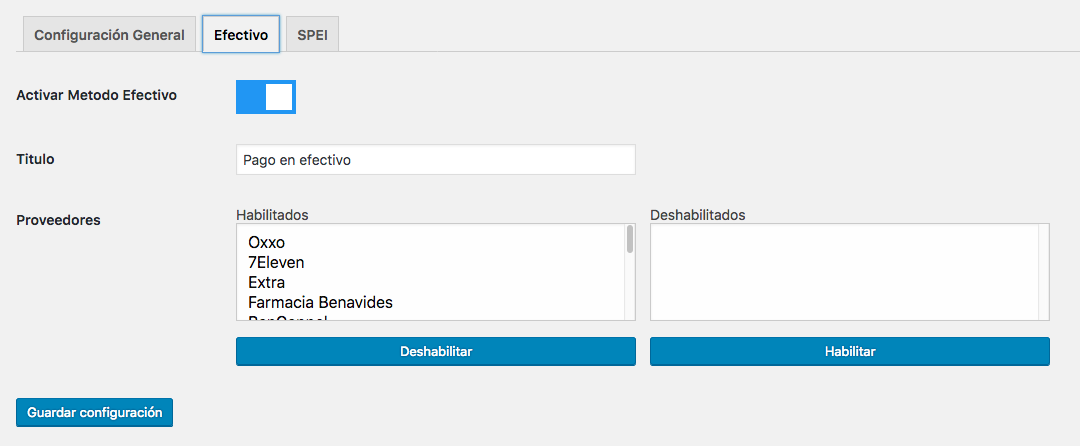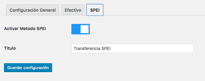 This tab contains the configuration fo the SPEI payment method