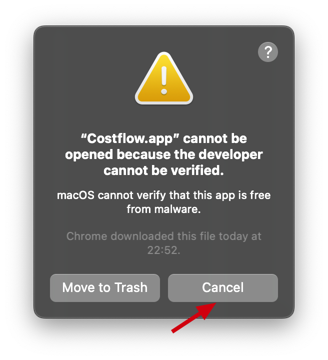 - Costflow can’t be opened because the developer cannot be verified.