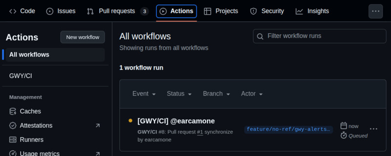 branch though you should see GWY CI Pipeline triggered if you create a pull