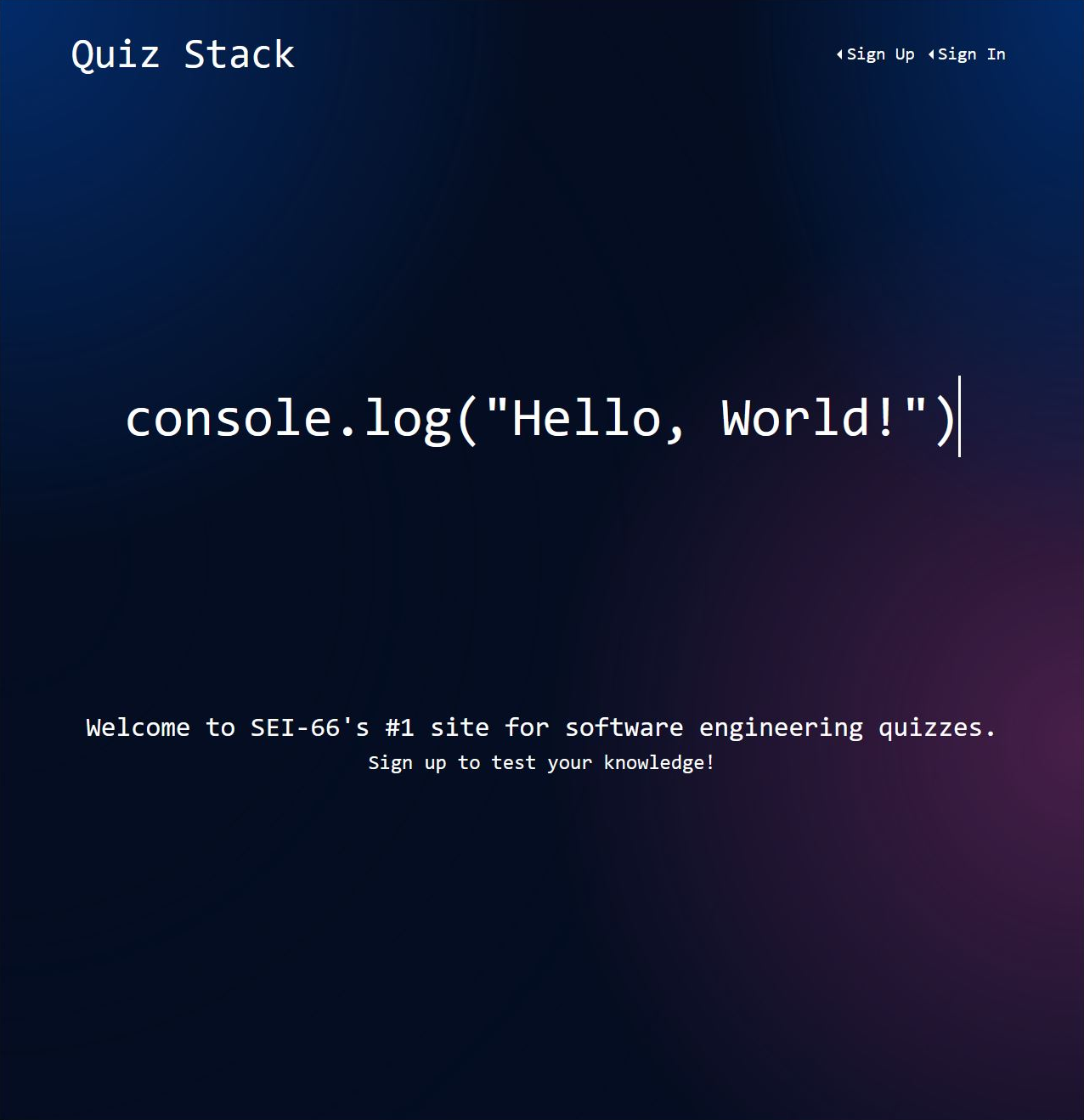 Completed during my 12th week on General Assembly’s Software Engineering Immersive, Quiz Stack is an application for junior developers (such as myself) to test their knowledge and use as a revision tool. I felt this idea would be beneficial not only to have use of such a tool but to build this tool in order to increase my own opportunities for learning. This project was built using MongoDB, Express, React, Node.js, JavaScript, jQuery, Bootstrap, HTML and CSS