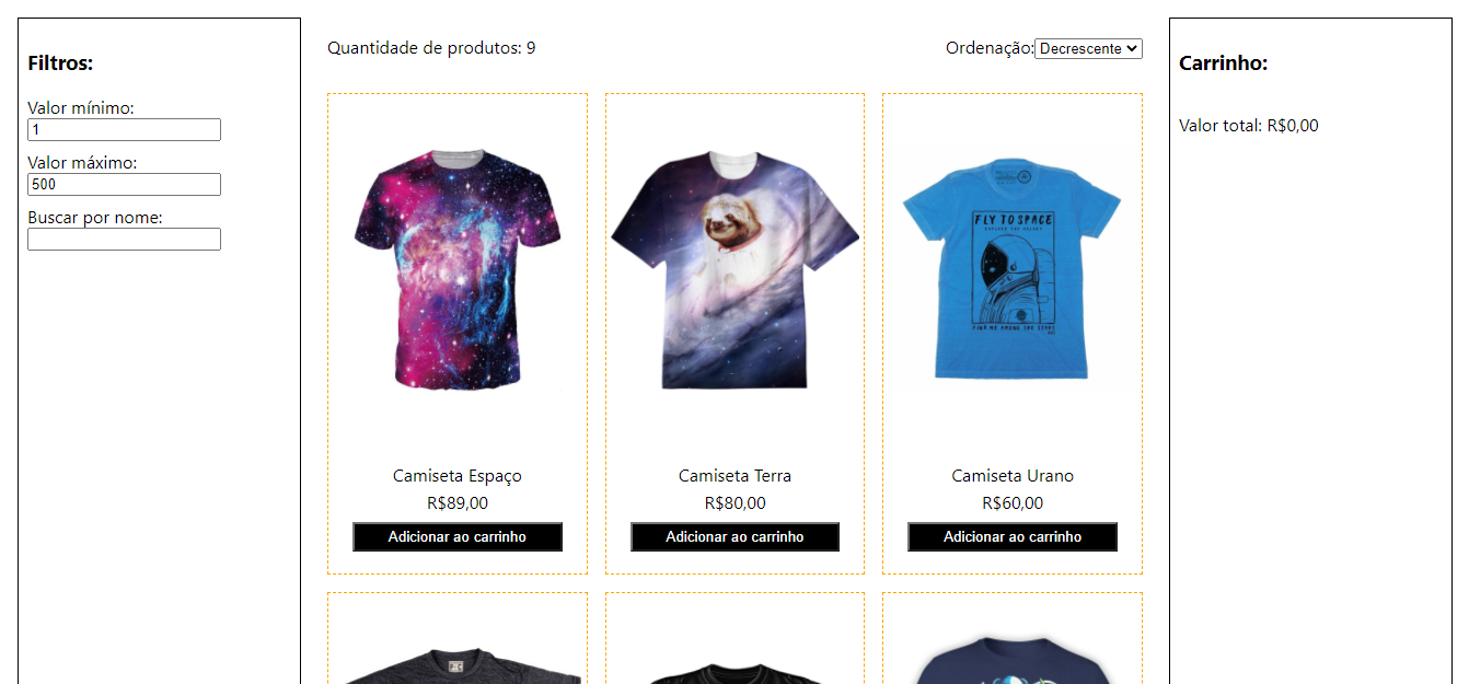 Todos os produtos na página inicial sem haver algum dado no filtro de valores.
