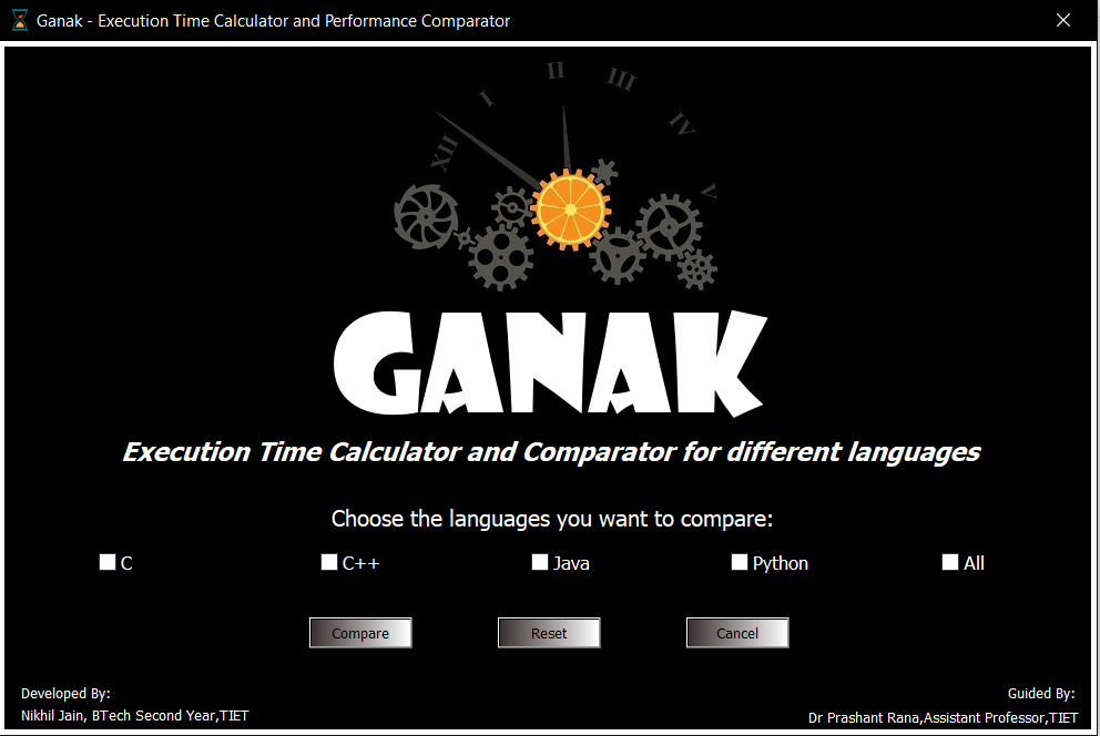 GANAK is used to calculate the execution time of different programing languages and then compare their performance and tell us the best programming language.