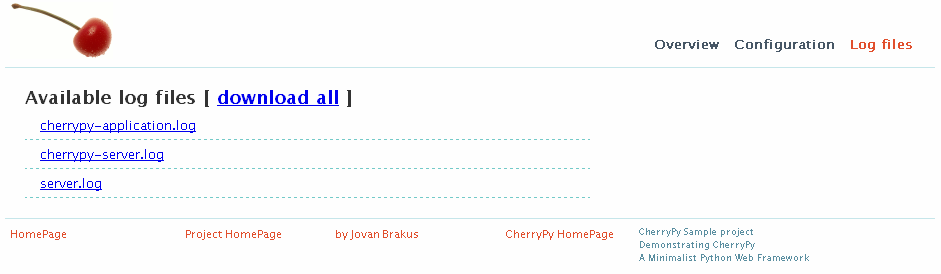 CherryPy-Example is a failry useless ini-file edit application. It provides (not-so-generic) web interface for viewing and editing INI files as well as interface for downloading log files.