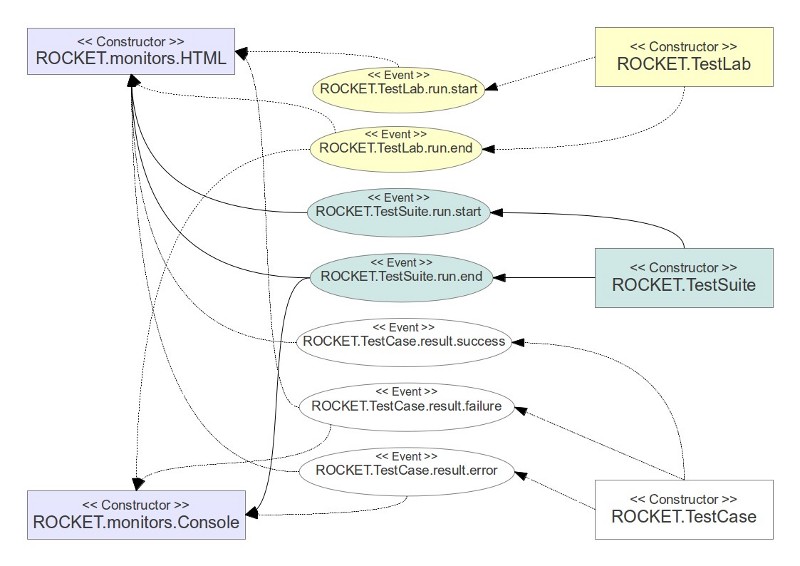 Monitor: A monitor is used to listen for ongoing tests and their results and displays them in one way or another. RocketScience comes with two monitors by default, namely the HTML monitor to be used in browser environments and the Console monitor which uses either the web console or node's console to display results. Also, writing your own monitors is really easy.