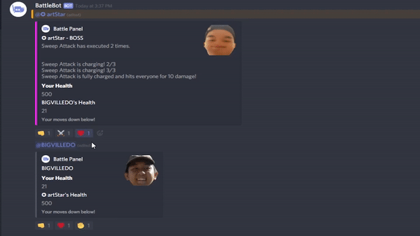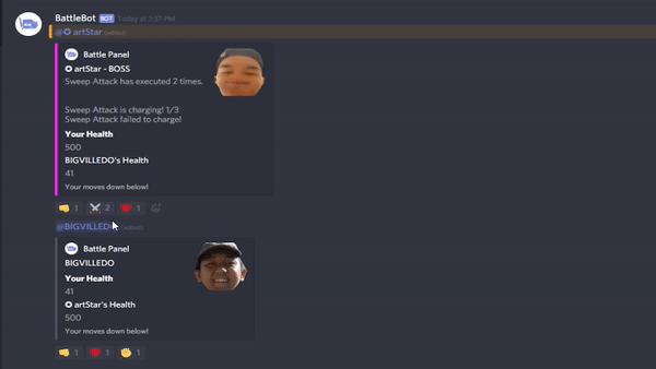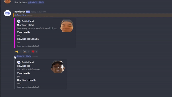 BattleBot is my submission to Discord Hack Week! Spend your down time in between games battling against your friends or even Wumpus in a fun, spammy way!