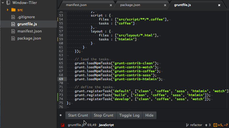 - If your project has more than one Gruntfile.js or Gruntfile.js is not located in a project root folder then you can use the Gruntfile Paths setting. The order matters: first valid Gruntfile found will be used.