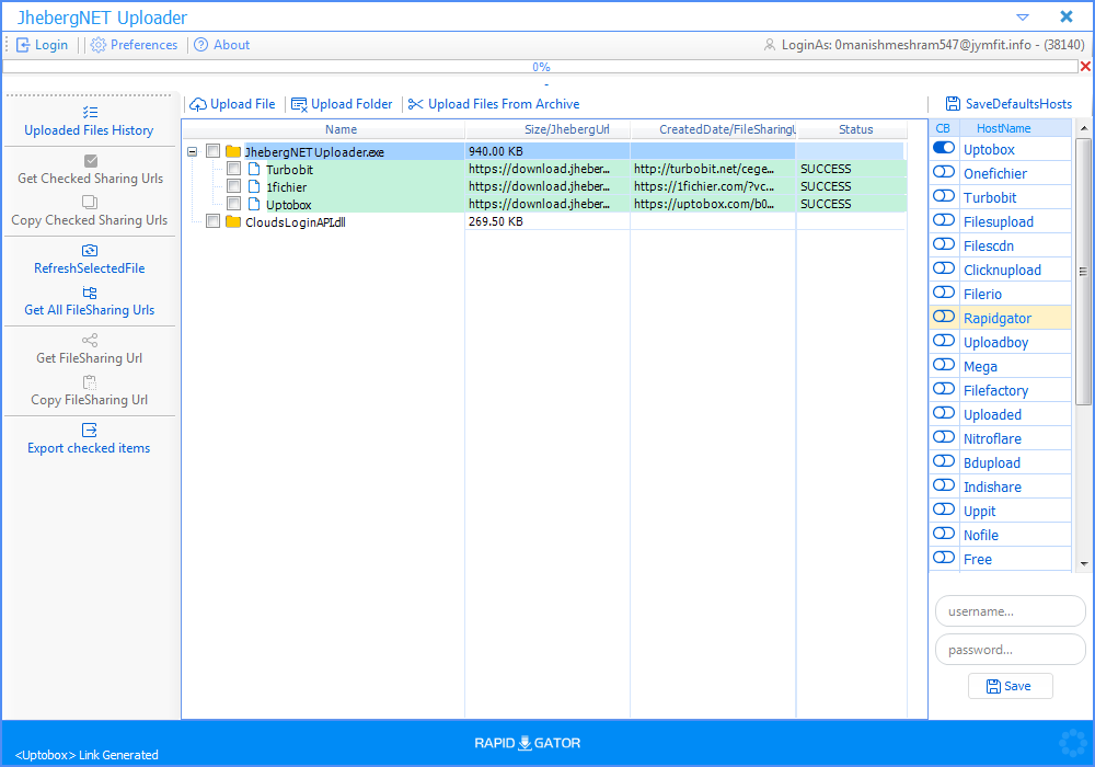 - Supported Fileshareing Sites: