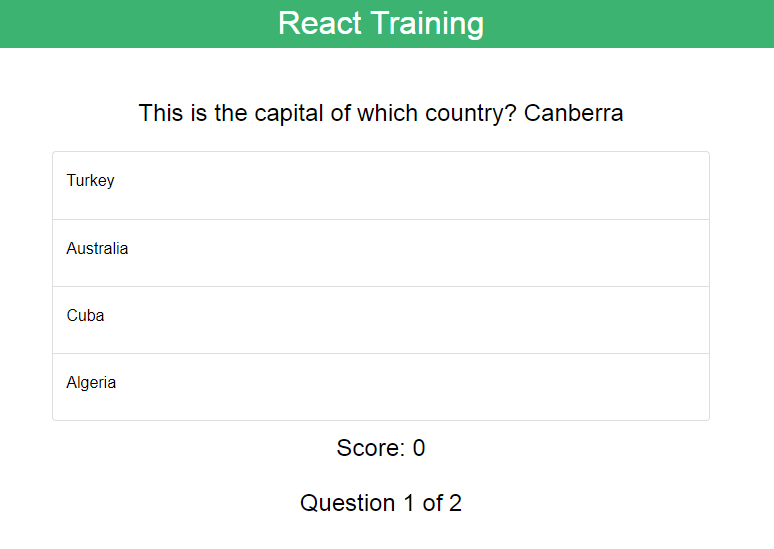 This is a quiz app created using React under the "React Fundamentals" training provided by Making Sense. The project was bootstrapped with Create React App.