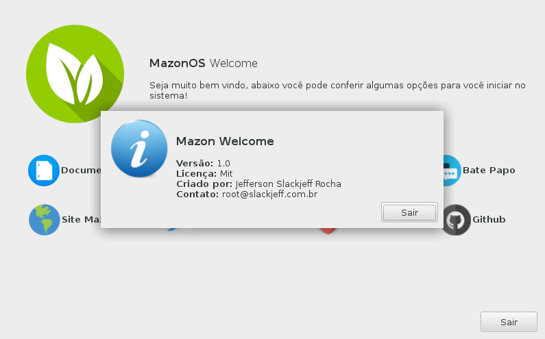 mazonwelcome Exibe tela de boa vindas para distribuição MazonOS. Criado totalmente em bash + YAD. Tela Principal Tela com Abertura Versões GNU bash >= 4.3.48 yad >= 0.40.0