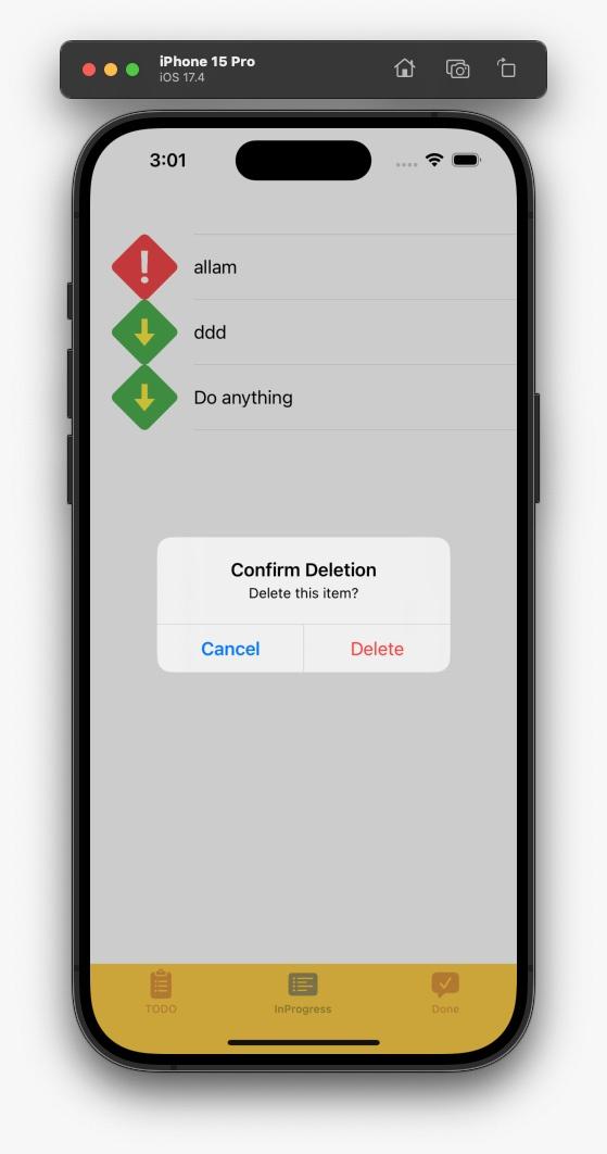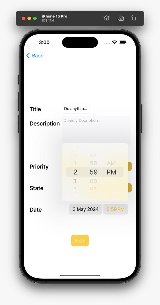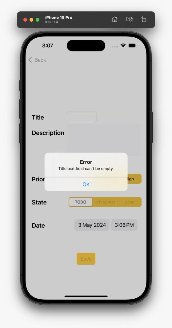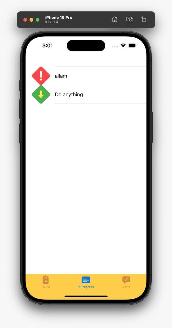 This is a simple Todo application implemented in Objective-C. It allows users to manage their tasks with features such as creating new tasks, moving tasks between different states (Todo, In Progress, Done), searching for tasks, filtering tasks based on their state, and editing existing tasks.