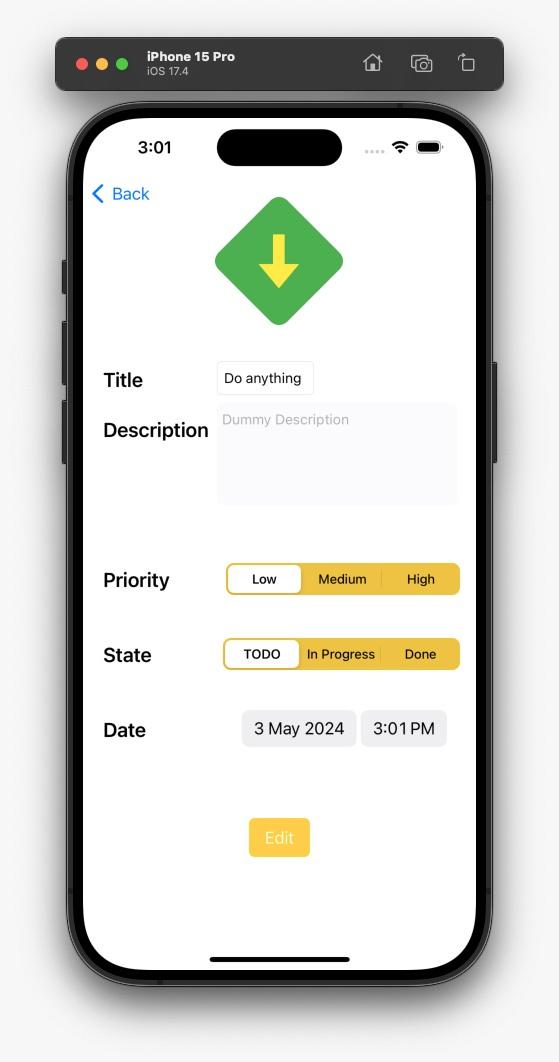 - Edit: Edit existing tasks to update their title, description, or state.
