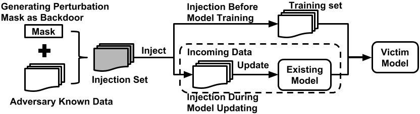 トレーニング時にバックドア画像を仕込んで置き、lossが最小になるようにトレーニングされる。