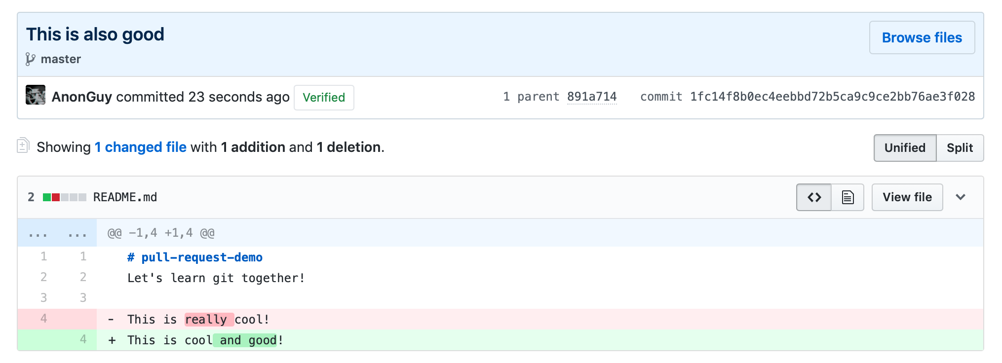 As you can see here, my teammate has commited a change to our fork:
