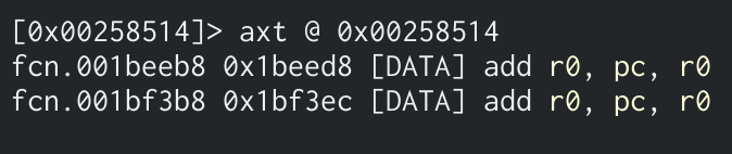As seen from the image above, this string is stored at offset/address0x00258514 in our case. Thus, we must find the functions that reference this address.