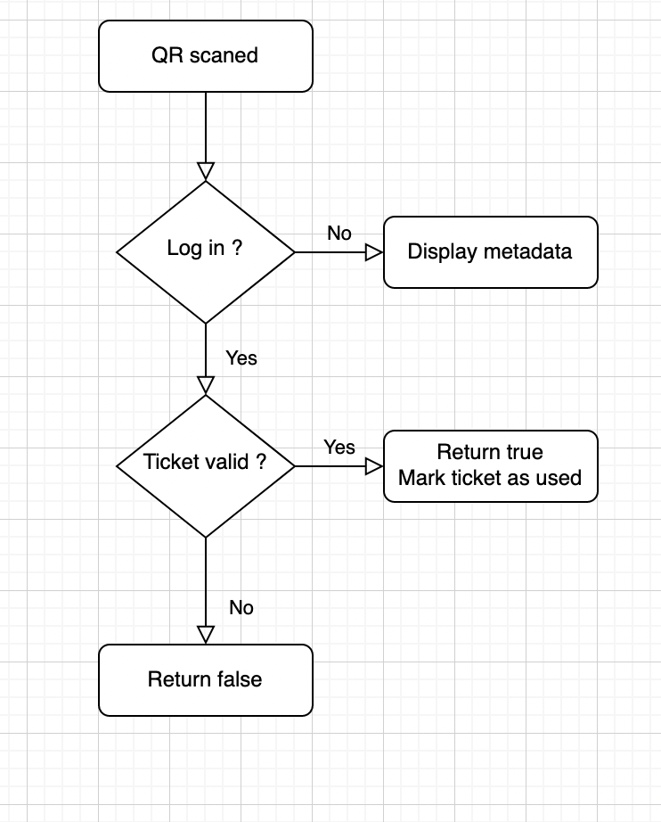 When the QR code is scanned if the validator is log in, it should update assistent list check if the nft has been used to access the event. If the user has no validator access it shoul redirect to the metadata view.