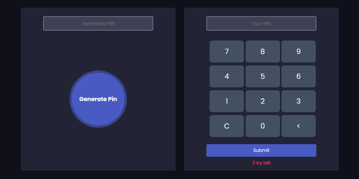 Generate PIN and verify it against the input typed by the user