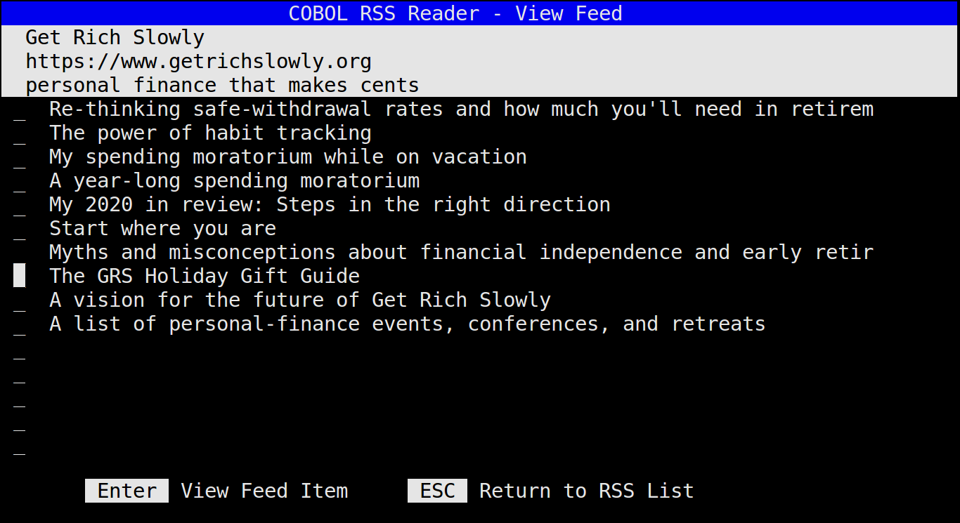 ./crssr --auto-configuration - Download and parse an RSS feed into feed list: