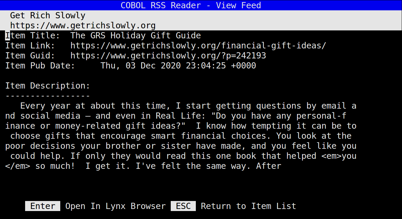 ./crssr -o [output filename] [url of rss feed] - Display usage help: