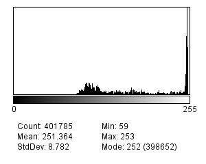 The histogram of these pages show more white pixels than the scan line artifacts: