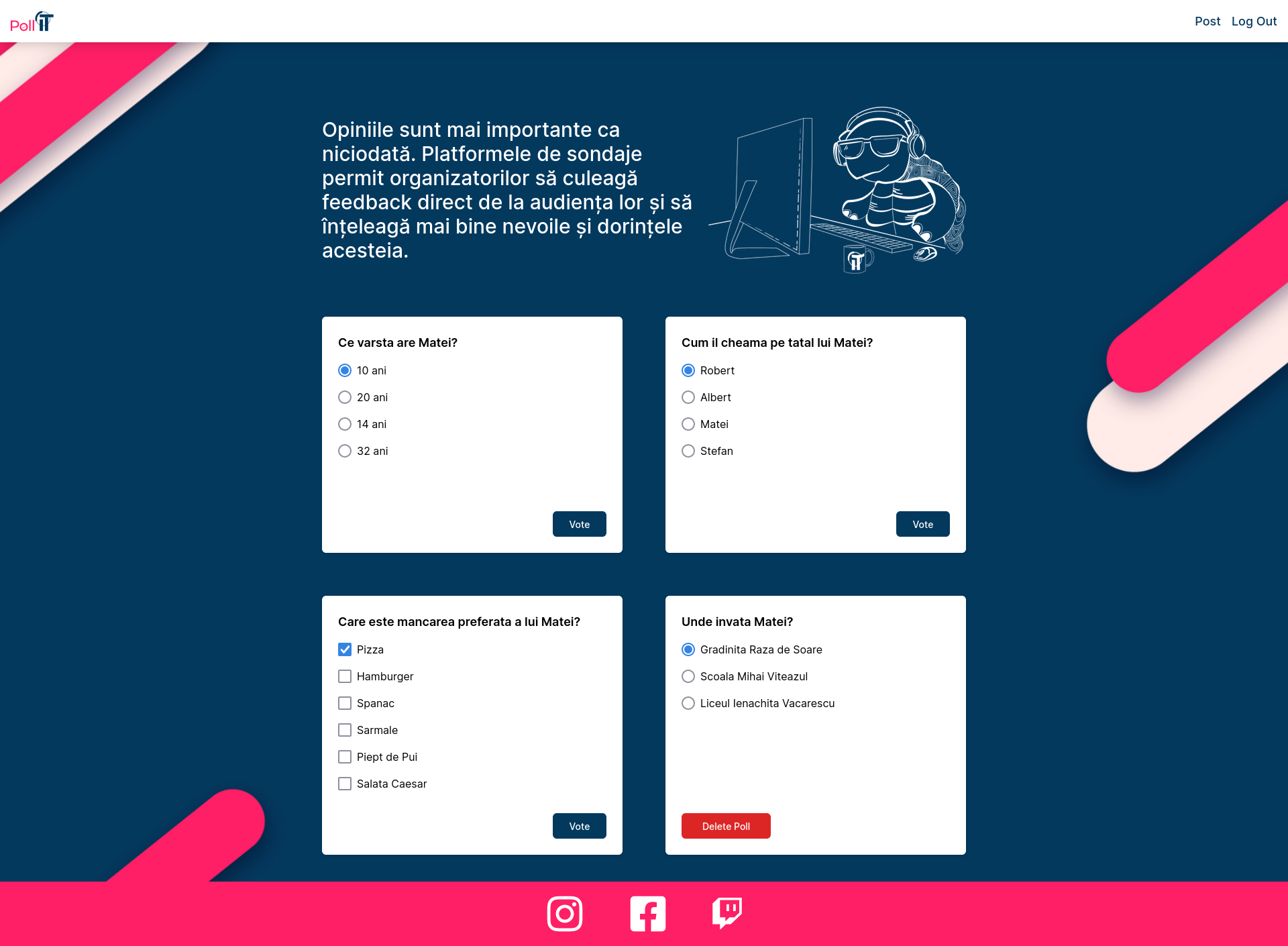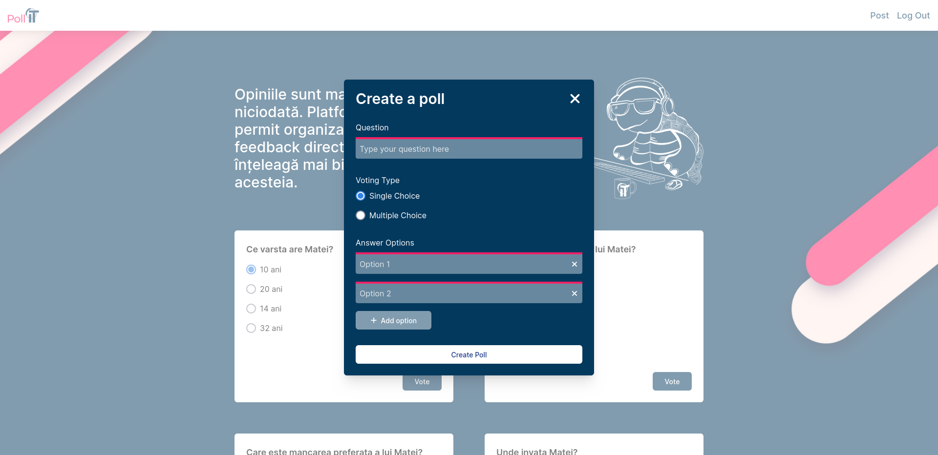 I developed a Poll Web App for LSAC's IT Department Recruitment Assignment, focusing on user-friendly poll creation. Our tasks included implementing an Authentication System (JWT), building CRUD functionalities for polls, and incorporating bonus features like Password Encryption, Email and Password Validation, Endpoint Validation, and poll voting. The project not only met the core requirements but also exceeded expectations with added security and user interaction elements.