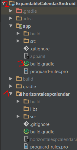 in your application build.gradle file (3) to horizontalexpcalendar module. Screenshot below