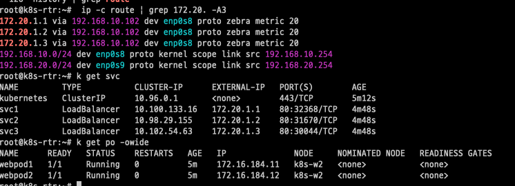 ## 실습 과제 1 - 샘플 어플리케이션 배포  - resolv.conf 확인  - 서비스 도메인 쿼리 확인  - curl 동작 확인  - env 에 저장된 도메인 정보 확인  ## 실습 과제 2 ### layer 2 - metallb 설정  - 단말 (k8s-pc) 에서 lb 서비스로 접속 테스트  부하 분산 테스트  ### bgp - metallb 설정  - BGP 정보 확인  - 서버 접속 테스트  - externalTrafficPolicy: Local 적용 후 테스트